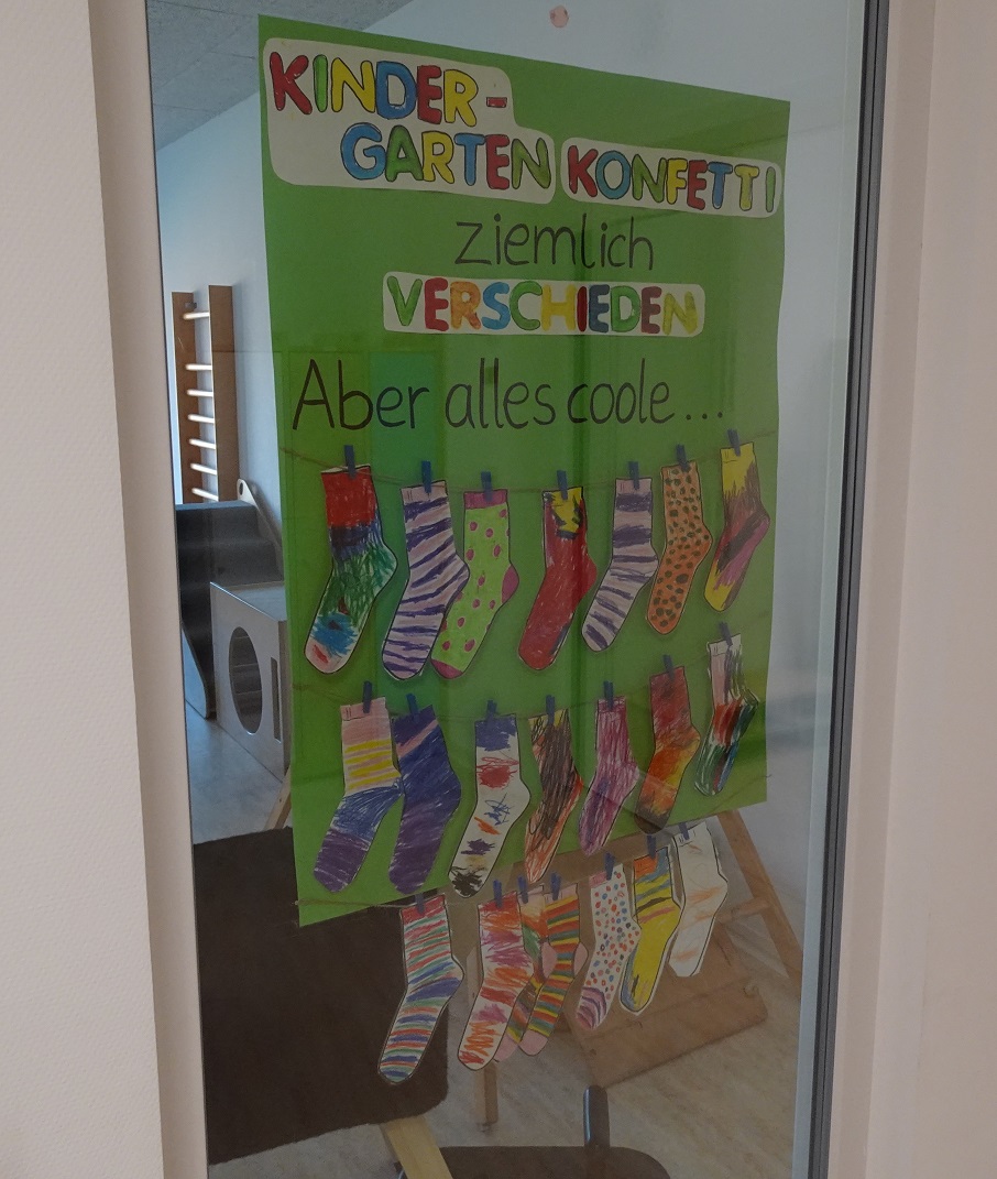 Wir teilen uns mit der „Krippe Konfetti“ das Gebäude. Durch die enge Zusammenarbeit entsteht ein vertrauter Ort, an dem die Kinder von Anfang an begleitet werden und der Übergang von der Krippe in den Kindergarten gelingt.
